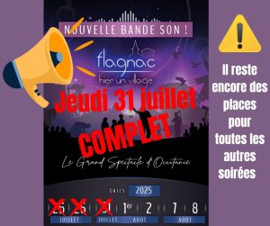 La soirée du 31 juillet affiche COMPLET ! il reste des places pour toutes les autres soirées
