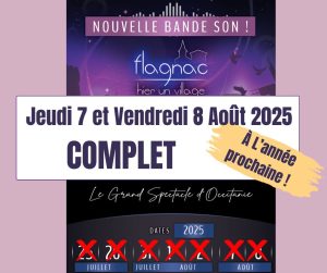 Les soirées de jeudi 7 et vendredi 8 août affichent COMPLET. Nous vous donnons rendez-vous en 2026!