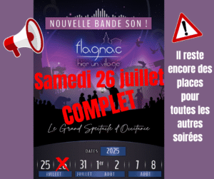 La soirée du 31 juillet affiche COMPLET ! il reste